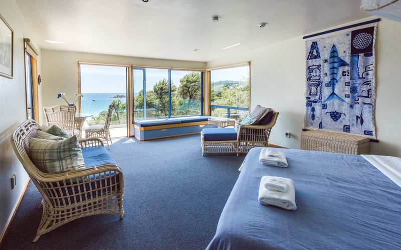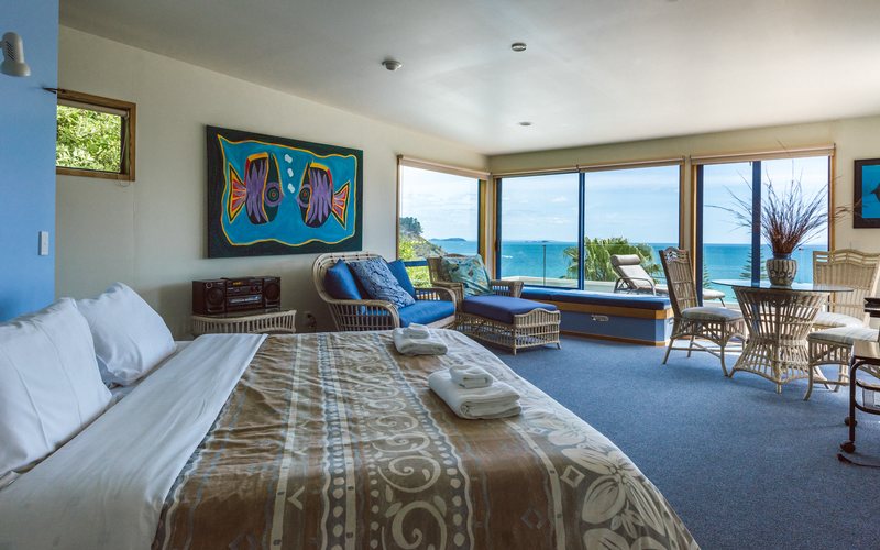 You’re also perfectly positioned for island spotting: Little Barrier Island lies on the horizon, and the Noises and Tiri Tiri Matangi are to the left. On your right is Nani Island, and in the foreground are Palm Beach and the ever-present sound of the sea. A 3-minute walk down a zigzagging path through a subtropical garden leads you to Palm Beach, one of Waiheke’s loveliest, with pristine white sands and safe, calm seas suitable for swimming. There’s even a playground and complimentary BBQ facilities, making the Manuka an extremely affordable way to indulge in a luxury holiday.