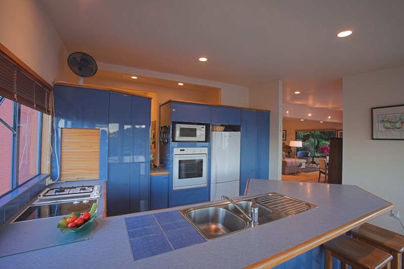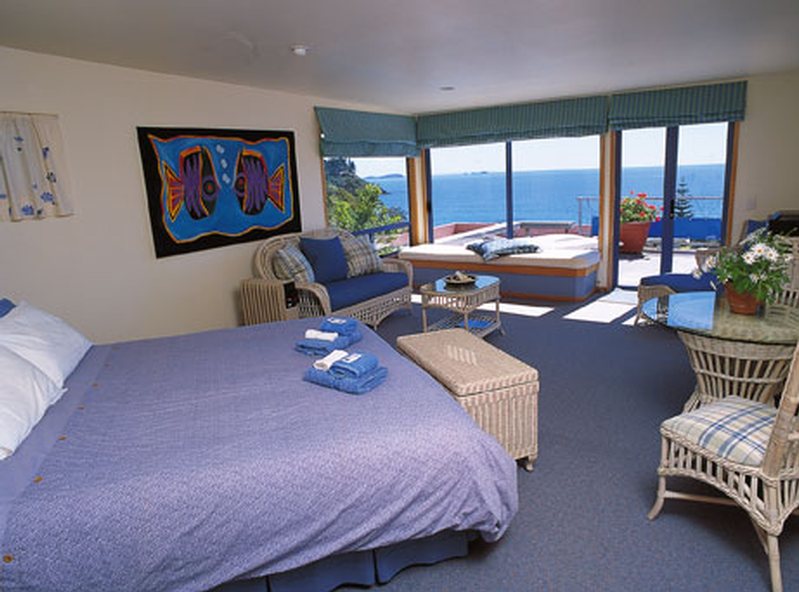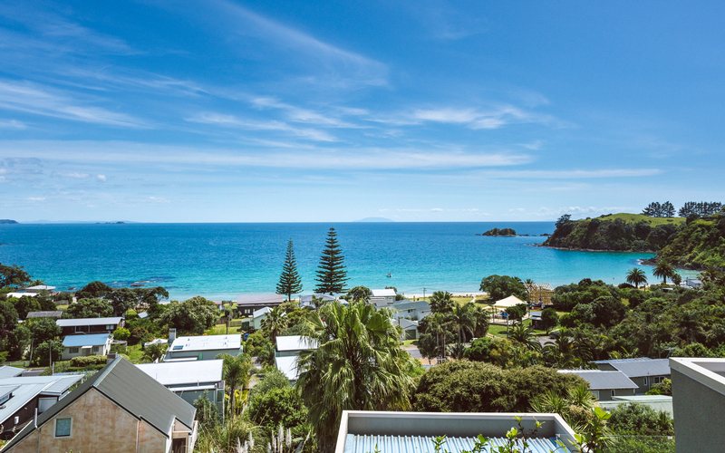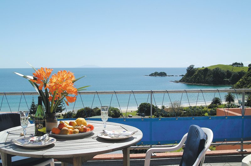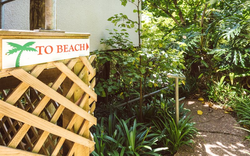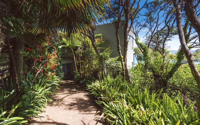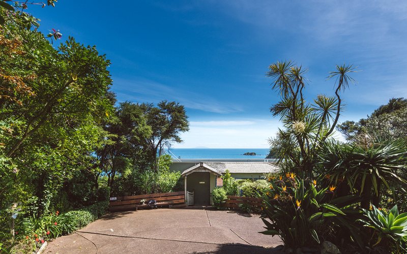 You’re also perfectly positioned for island spotting. Little Barrier Island lies on the horizon, and the Noises and Tiri Tiri Matangi are to the left. On your right is Nani Island, and in the foreground are Palm Beach and the ever-present sound of the sea. A zigzagging path winds through a lush, subtropical garden to the road below then ultimately the sand—a safe, all-tide swimming beach. You’ll arrive at the water’s edge in about 3 minutes!
