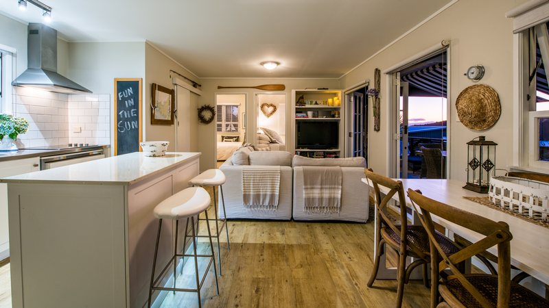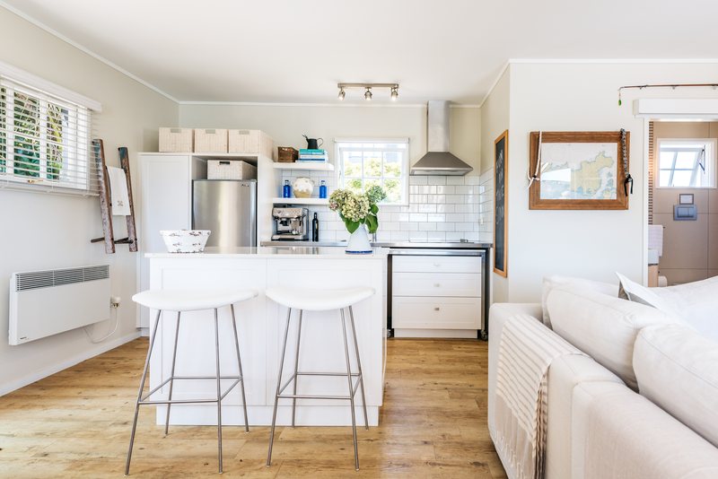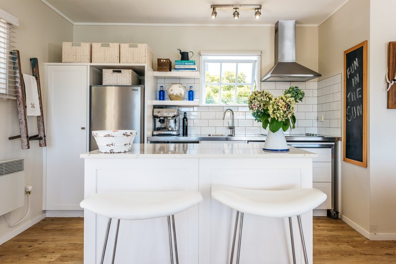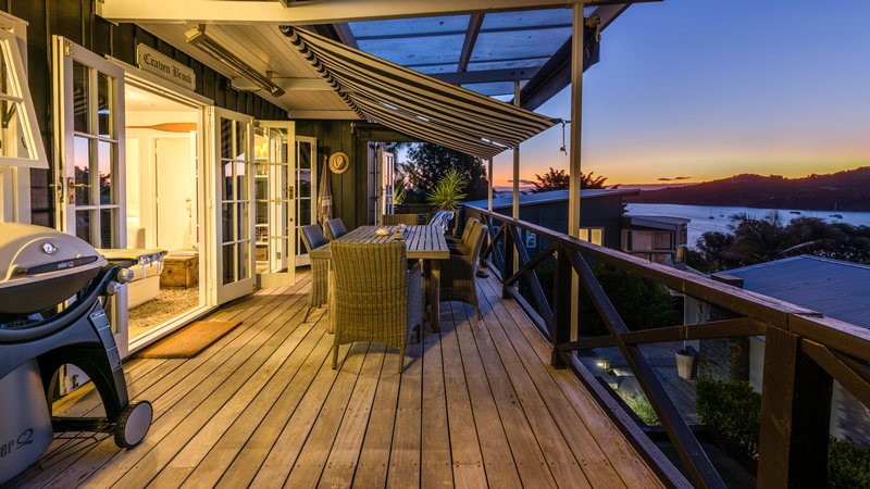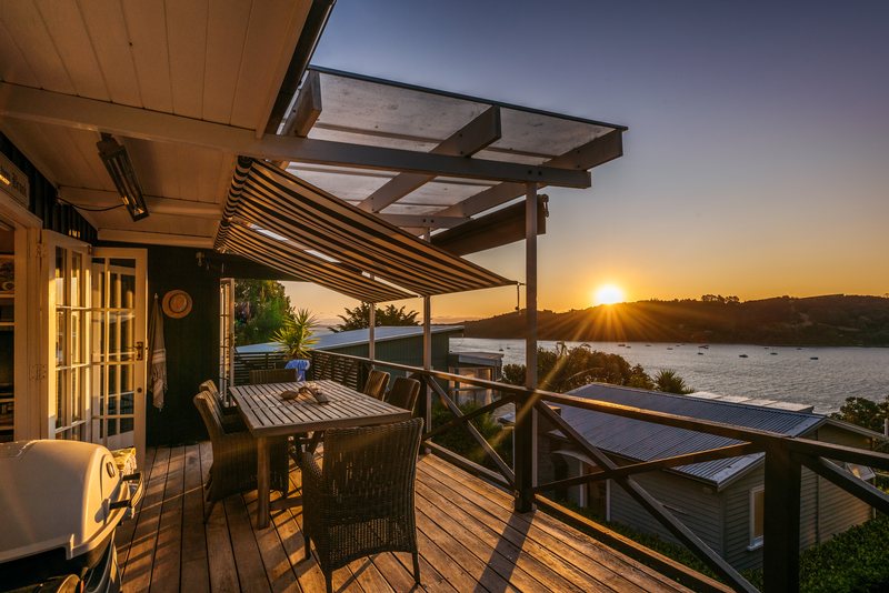 Treat yourself to the ultimate, romantic escape in this classic, designer Cape Cod style bach. The breath-taking sea views and magnificent sunsets are the perfect back drop for your magical getaway. Nestled into the hill side, with all day sun, this bach has everything you need for tranquility and relaxation. It is beautifully appointed, with a modern and stylish interior that flows to the large sun drenched deck, complete with sun lounger, sunshades and BBQ. Dine al fresco on balmy evenings while you take in the panoramic views. Or cosy up together in the luxurious lounge and chase away the winter blues in your private, piece of paradise .